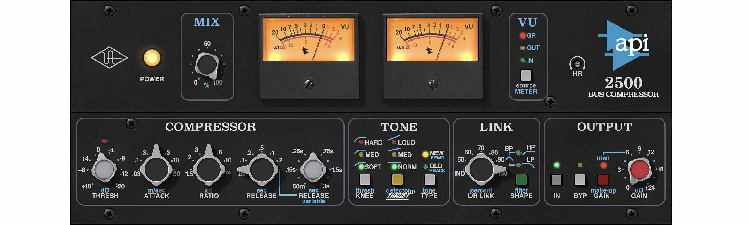 UAD API 2500 Compressor Plugin replicates the iconic sound and functionality of the well-known API 2500 hardware compressor that adds punch, warmth, and musicality to any audio source. With its intuitive controls, signature API sound, and precise fundamental control, it delivers a classic analog tone and dynamics to drums, vocals, and mix busses, enhancing the overall impact and energy of the music.
