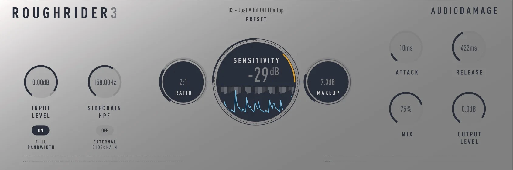 Audio Damage RoughRider 3 is another versatile and powerful Compressor Plugin that will bring a unique and edgy character to your audio productions and is known for its aggressive and gritty sound, making it the perfect choice when you want to add punch and intensity to instruments like drums, basslines, and other dynamic elements in your mix.
