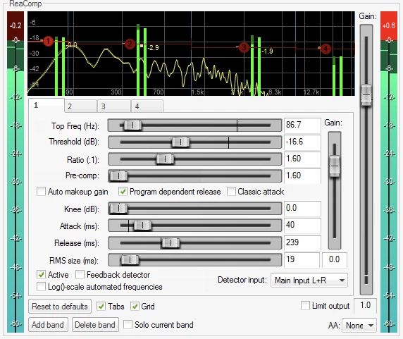 Developed by Cokos, ReaXcomp is a Multiband Compressor included in the popular digital audio workstation (DAW) Reaper. Although it only offers up to three bands of compression, with independent controls for each band, ReaXcomp features a straightforward interface with customizable parameters and provides flexible, dynamic control across the frequency spectrum.