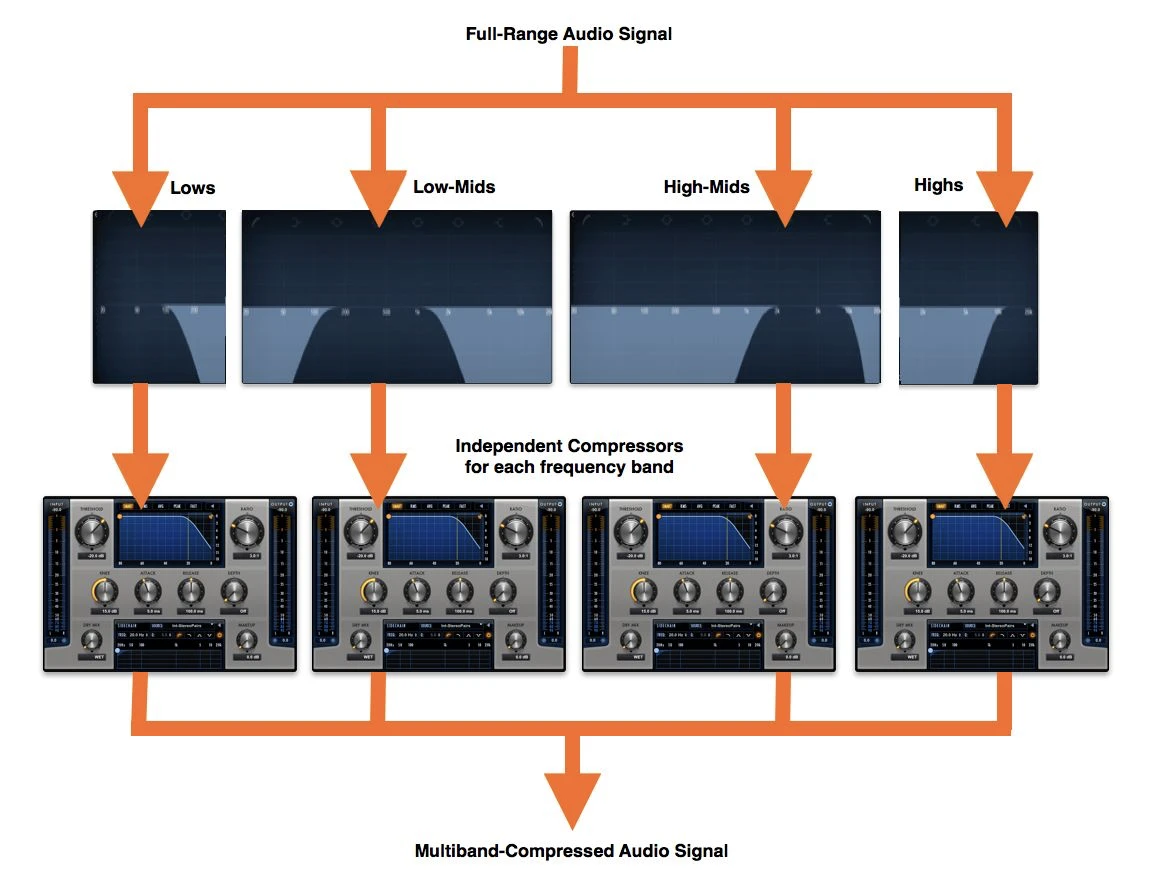 To comprehend the capabilities of a Multiband Compressor, first, you must know the basic difference between a traditional single-band compressor and a Multiband Compressor.