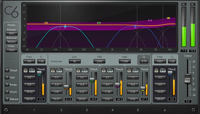 The Waves C6 Multiband Compressor is one of the most popular choices among Audio Professionals, as it provides six bands of compression/expansion and offers a range of controls for each band, including threshold, ratio, attack, release, and makeup gain.