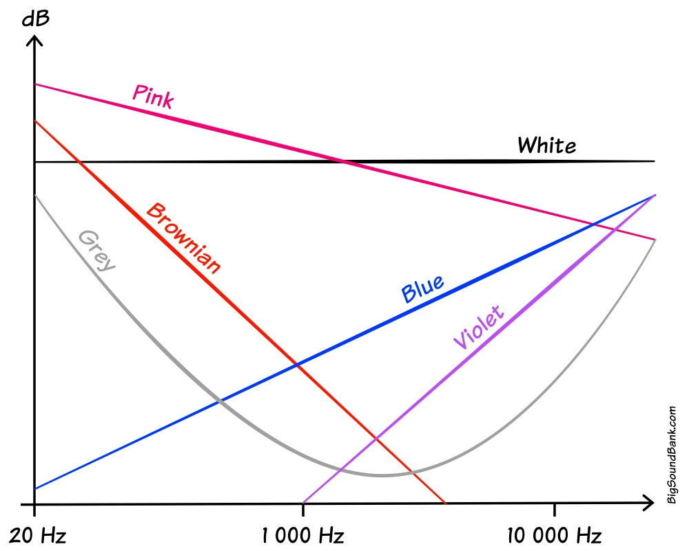 "Colored noises," named based on their spectral properties, have various applications in fields such as music, acoustics, electronics, and even sound therapy. Each color corresponds to a distinct frequency profile, offering a fascinating glimpse into the diversity of sounds. Let’s explore the main categories of colored noises together.