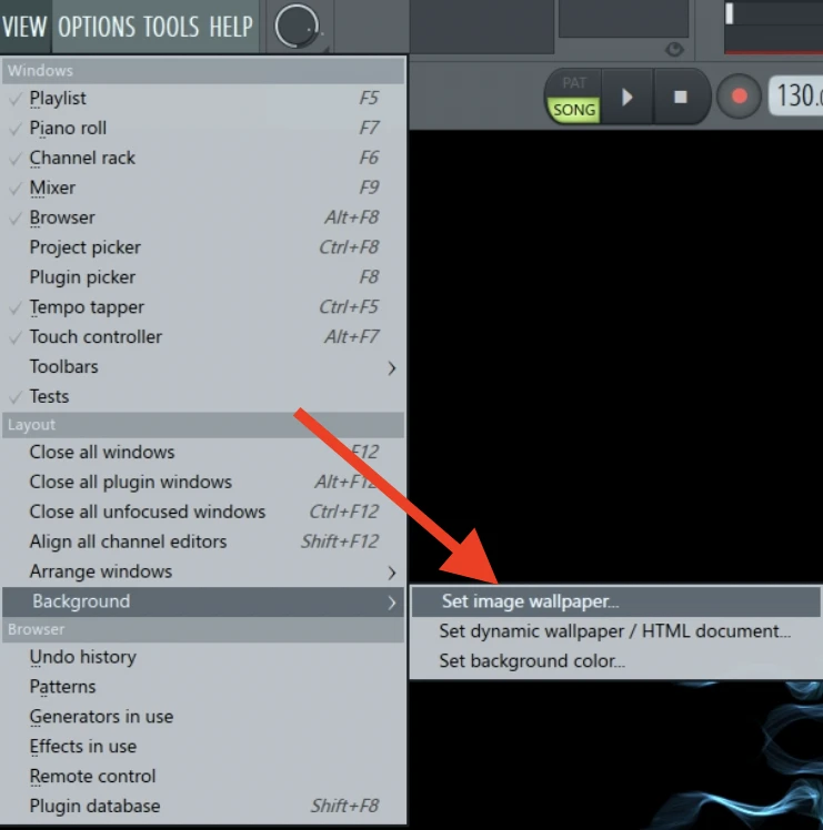 And you are done. You will see that your preferred image is now set as the background image in FL Studio.
