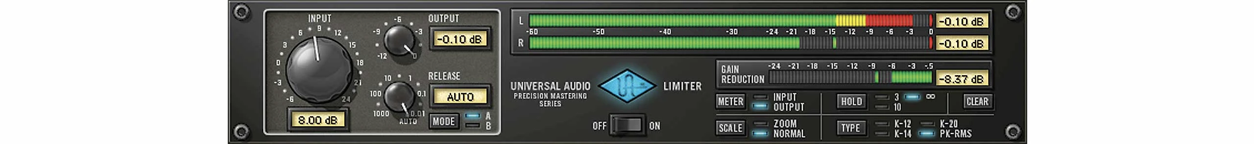 With comprehensive metering options like VU and peak level meters, the Universal Audio Precision Limiter helps users with accurate gain reduction monitoring and precise control to produce perfectly calibrated audio.