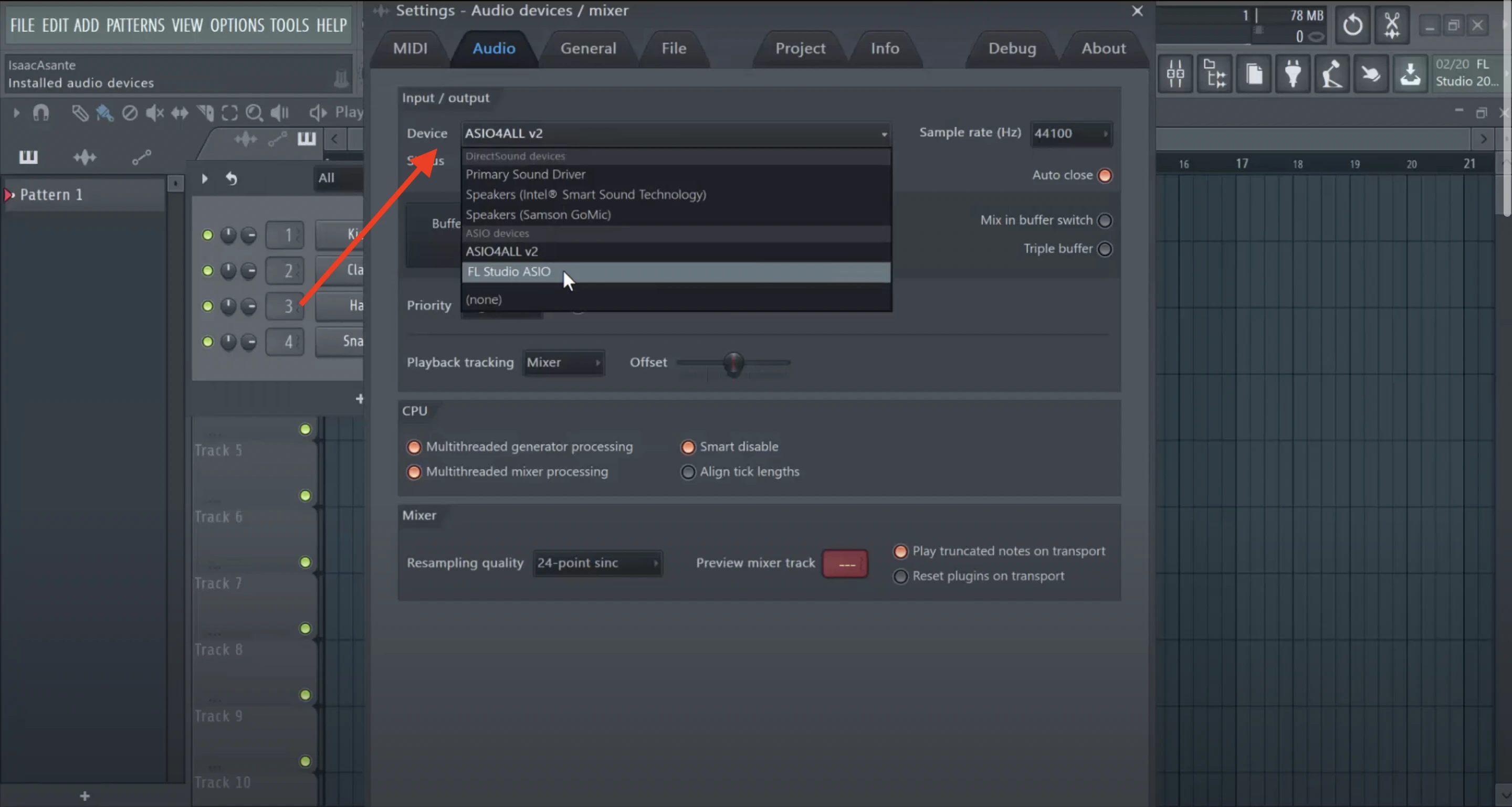 Tip- Keep the selected buffer size to the least possible while recording your vocals in FL studio to avoid any delay when listening to the sound in your headphones