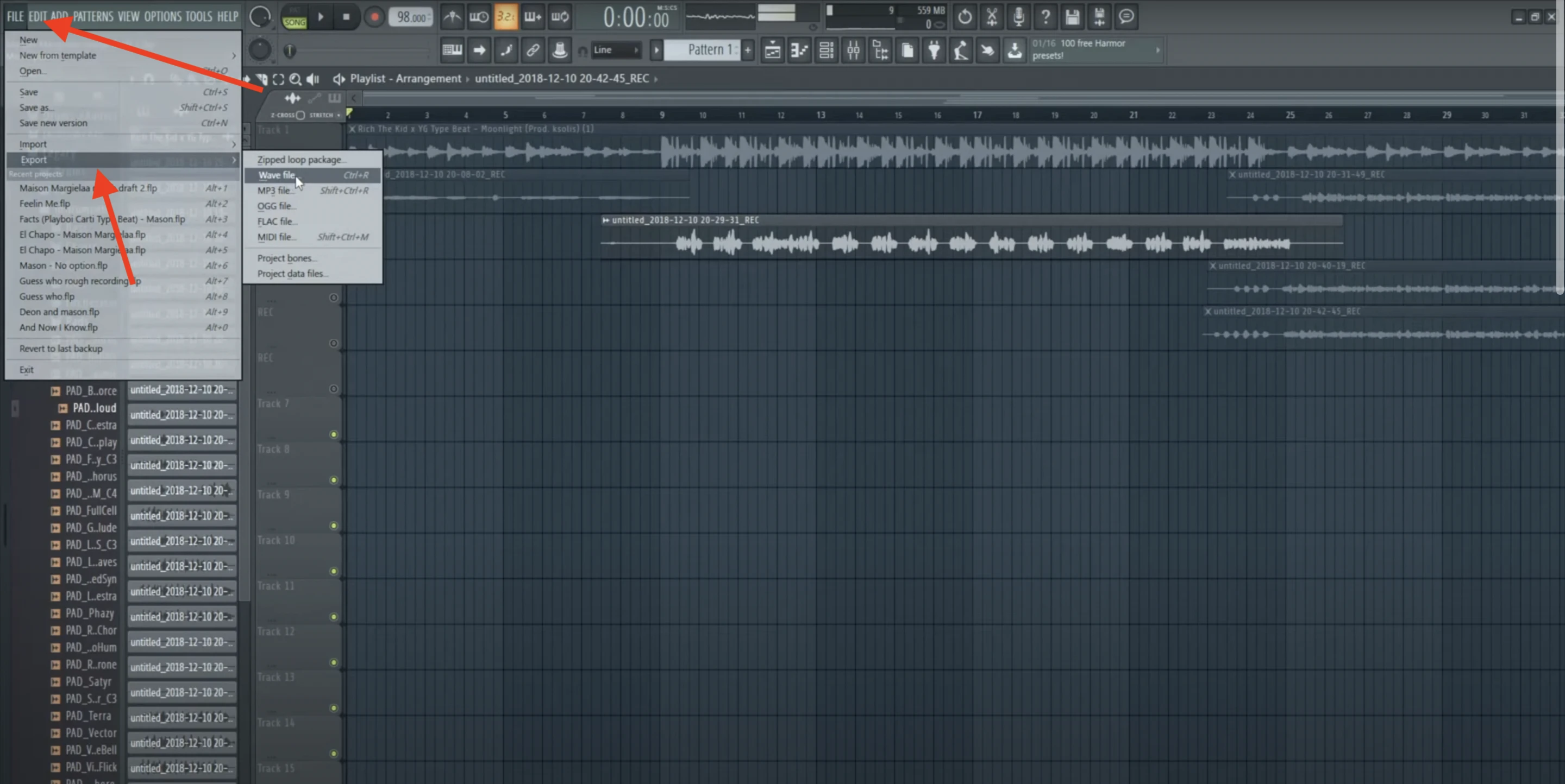 This step is fairly easy and will complete your journey of learning how to record vocals in FL Studio. To export the recorded sound, select the vocal track you want to export (as of now only one track can be exported at a time), go to the File tab, from the drop-down menu select export and then select the desired file type. If you want a high-quality sound file, make sure you go for a WAV file.