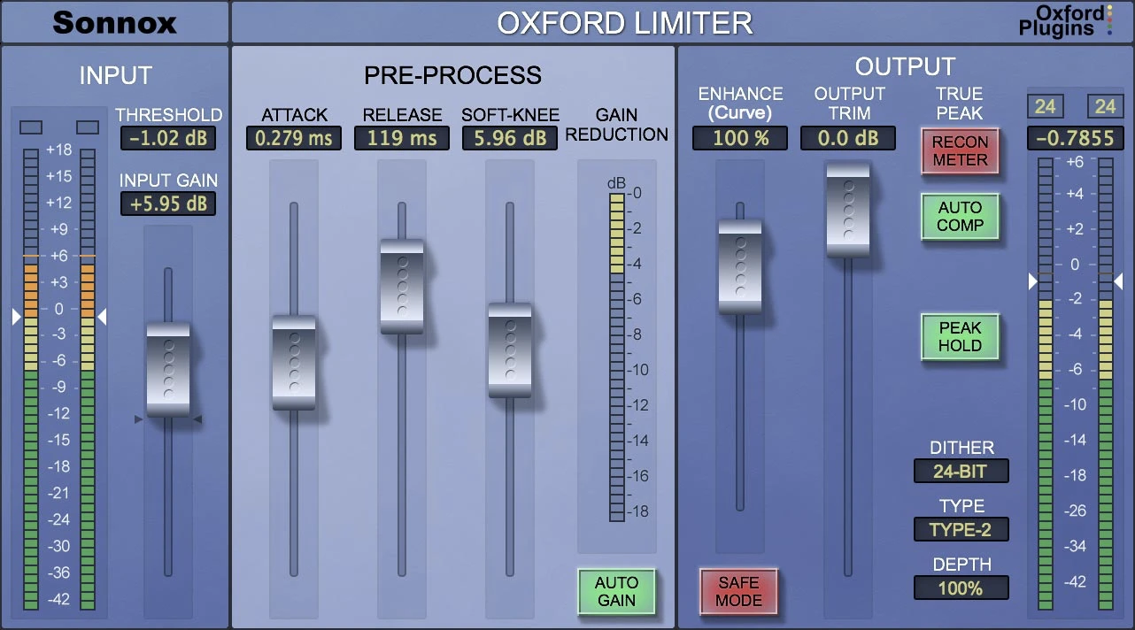 Sonnox’s advanced level detection algorithm allows it to analyze the input audio signal accurately, which eventually helps it produce precise gain reduction and accurate limiting.