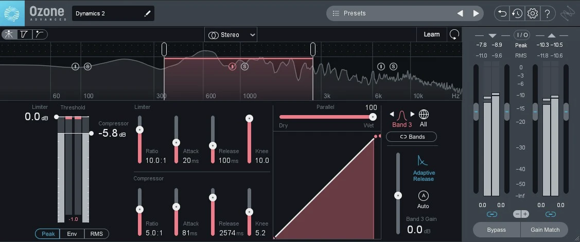 The Multiband Compressor in Ozone 9 offers adjustable crossover points, flexible parameter controls, and advanced features such as mid-side processing and spectral shaping.